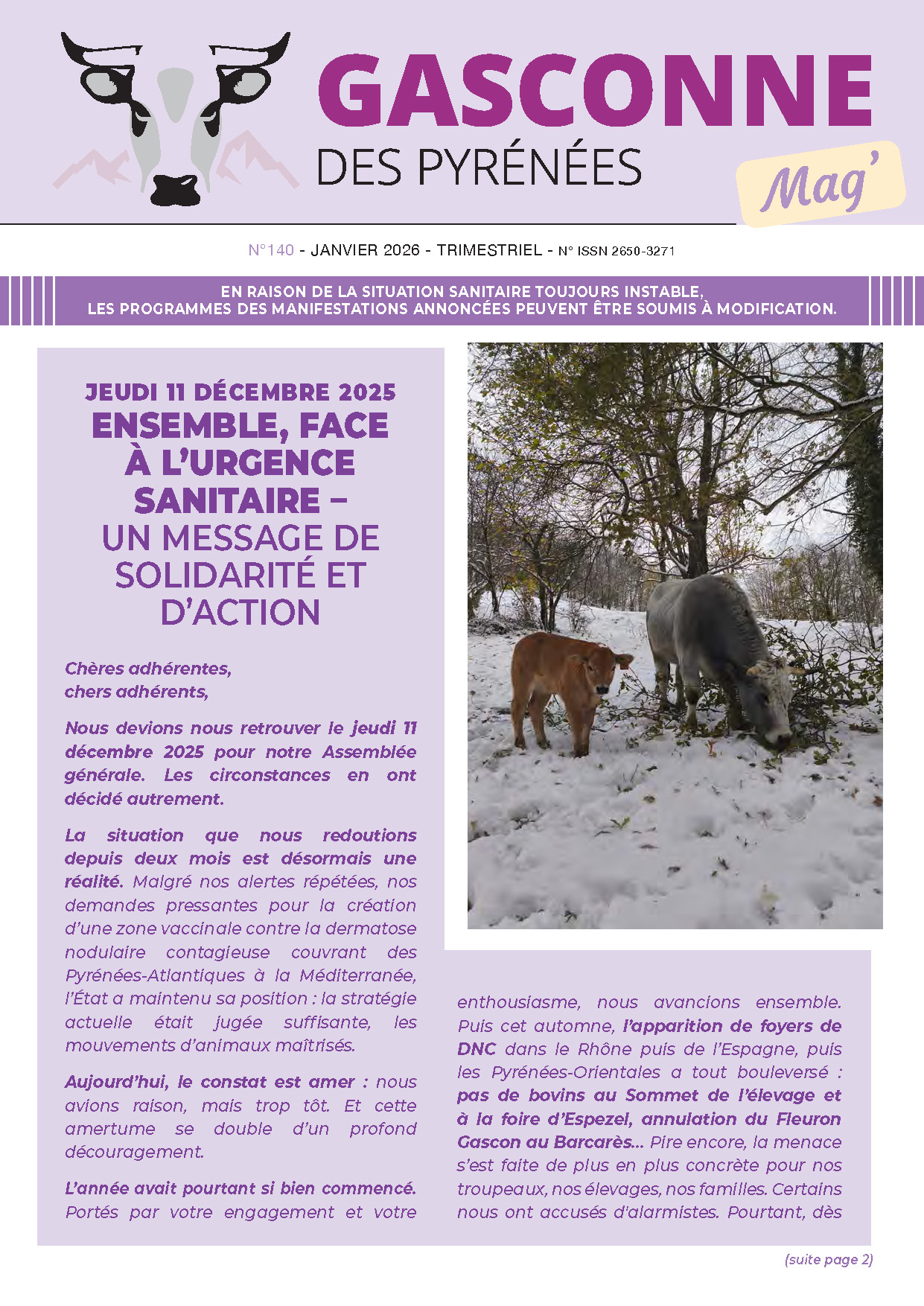 Eleveurs et éleveuses de Gasconne des Pyrénées, face à l'urgence sanitaire, le Groupe Gasconne des Pyrénées a rédigé une lettre à destination de l'actuelle ministre de l'Agriculture afin d'évoquer les incertitudes et les décisions urgentes à prendre vis-à-vis de la DNC.