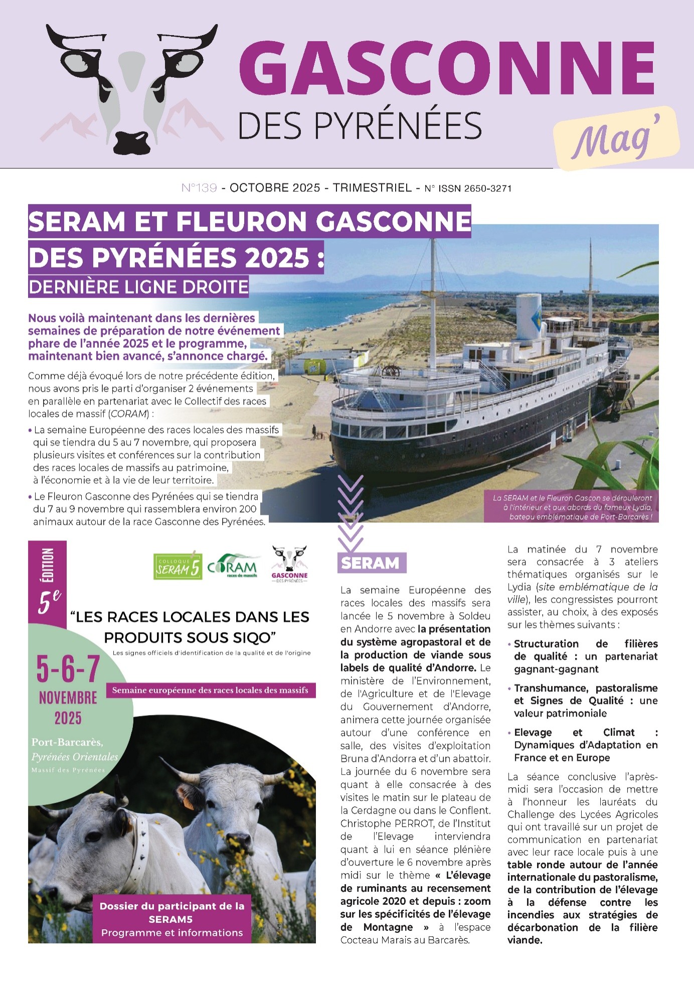 Pour les élevages qui souhaitent participer au Fleuron Gascon des Pyrénées 2025 à Port-Barcarès, vous avez du recevoir par mail une demande de confirmation.